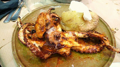 "Šiek tiek pikantiškas aštunkojis su alyvuogių aliejumi ir raudonaisiais pipirais", buvo pateiktas su bulvių koše ir atrodė, kad esame pas kažką namuose.