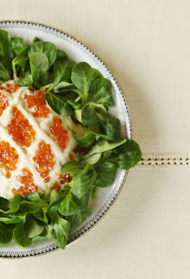 raudona ikra. Tarp sluoksnius plonai aptepkite majonezu. Viršutiniame